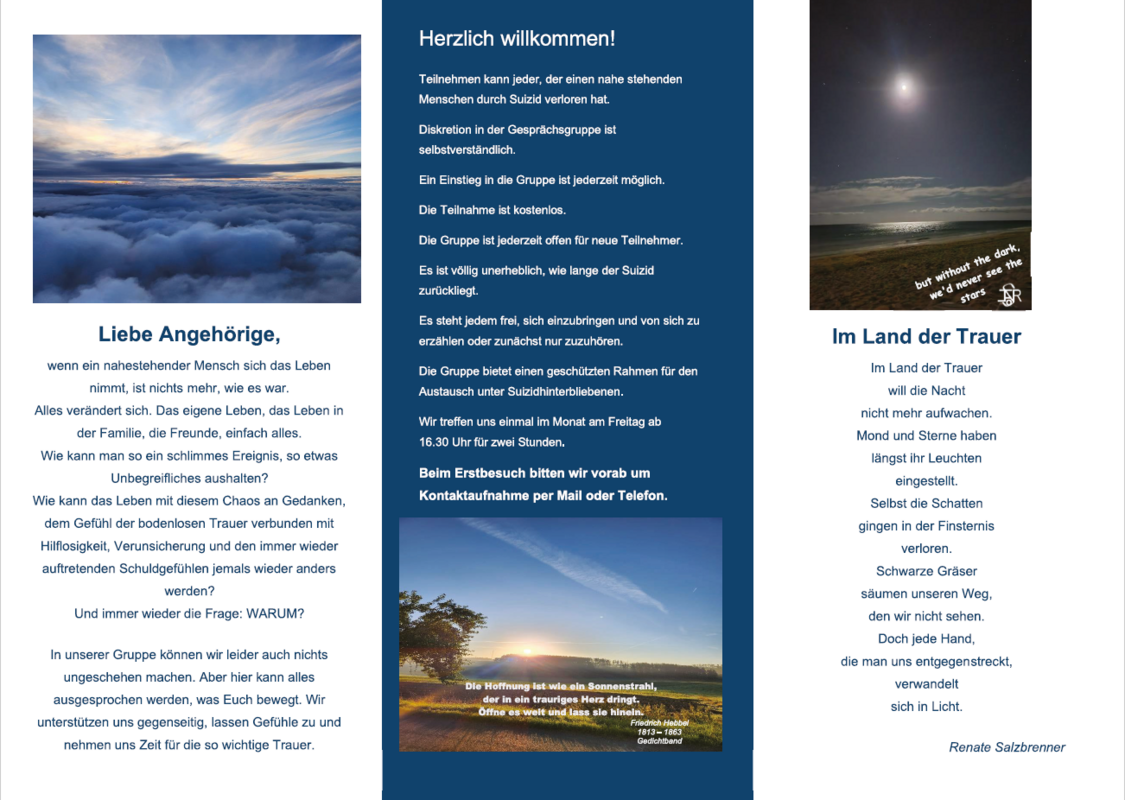 An den Gruppentreffen kann jeder teilnehmen, der einen nahestehenden Menschen durch Suizid verloren hat, absolut unabhängig von Konfession, Alter, Geschlecht und Herkunft.